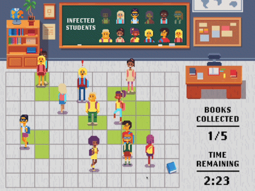 One of your classmates has a cold and it's spreading throughout the class. Avoid infected areas while collecting your books around the classroom.